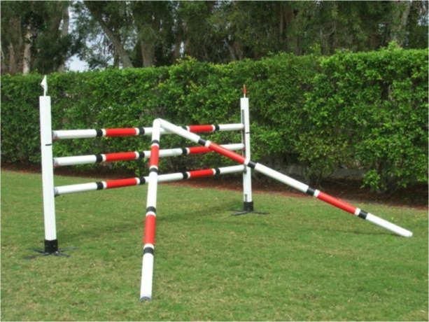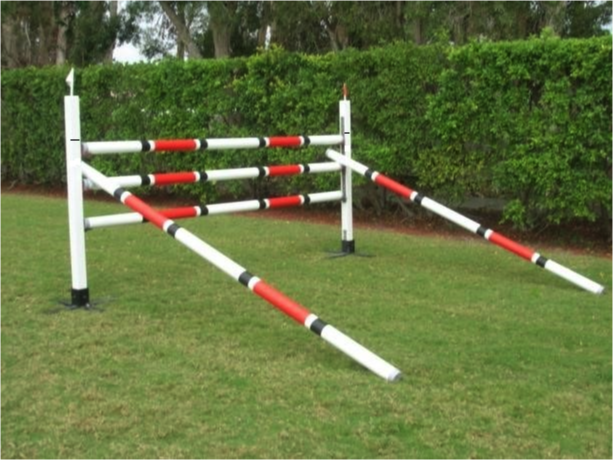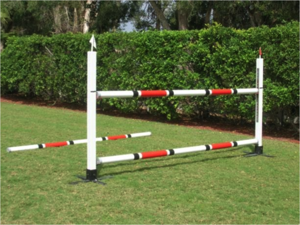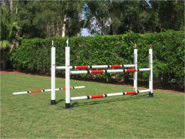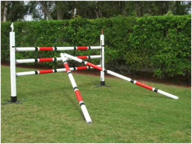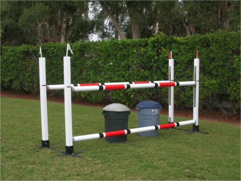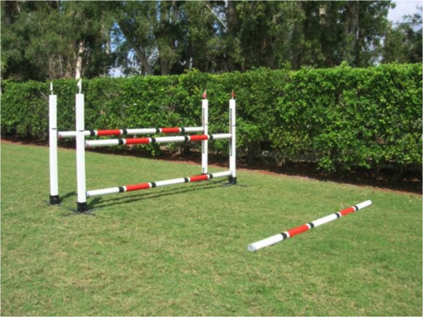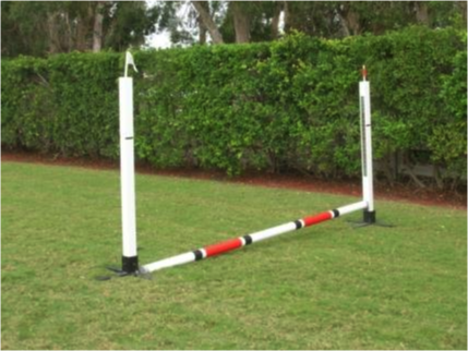 Jedes Hindernis mit einer Höhe von 1.20 m und mehr muss mindestens eine zusätzliche horizontale oder diagonale Stange oder ein Kreuz in Auflagen auf der Absprungseite haben.