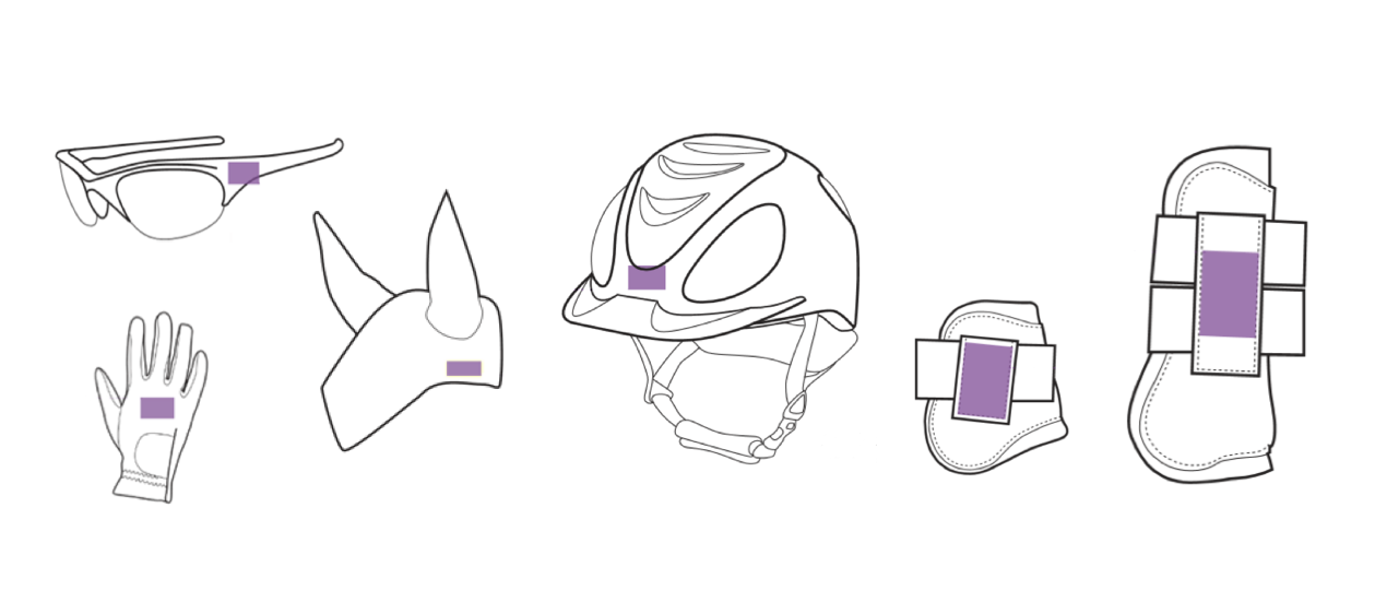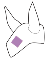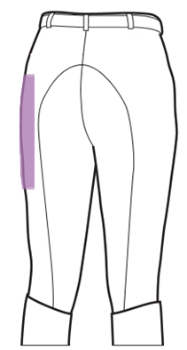 - achtzig Quadratzentimeter (80 cm2) (max. 20 cm lang, max. 4 cm breit) einmal längs auf dem linken Bein der Reithose.
